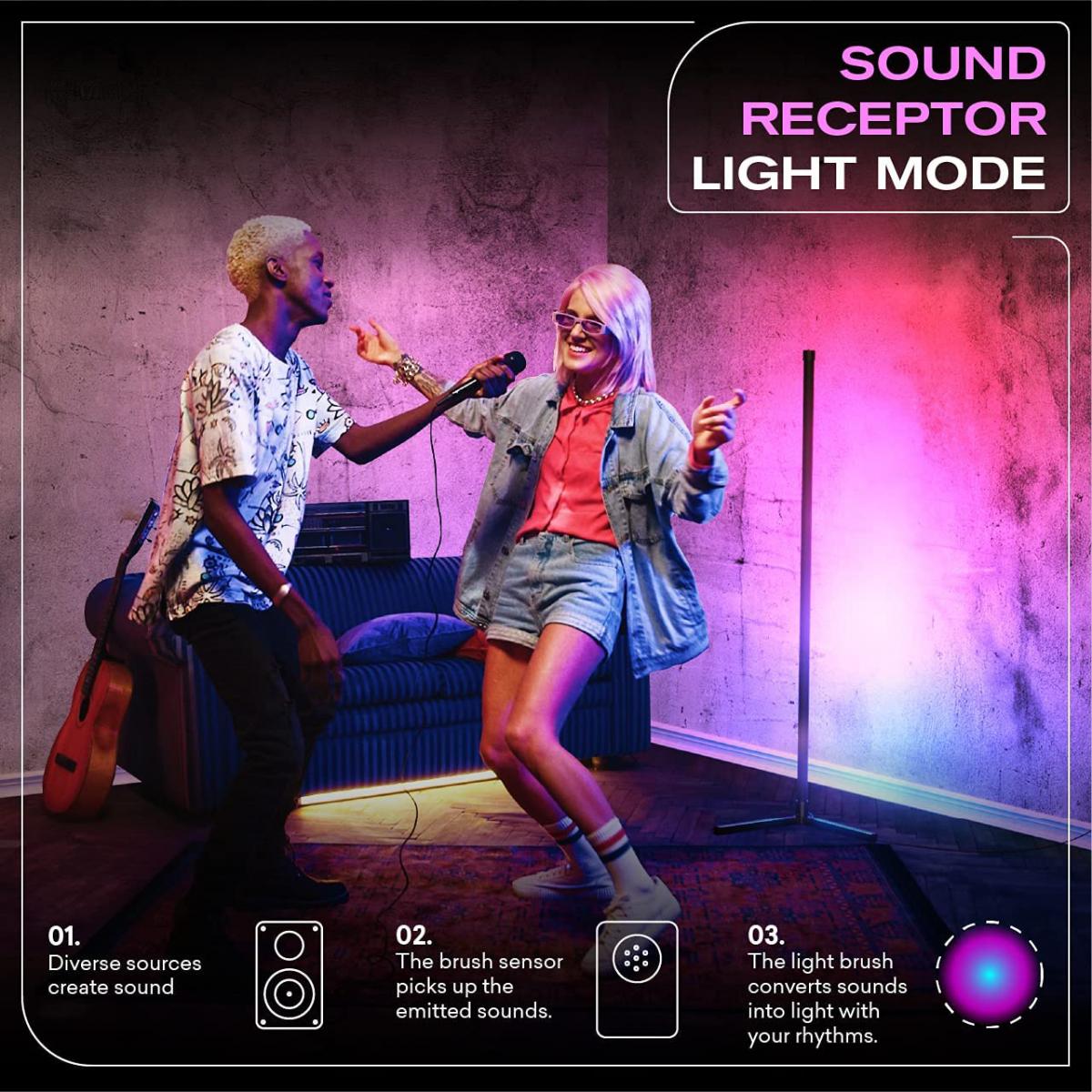 Dream Color color-changing corner lamp with 16 million lighting colors and 300+ lighting effects, allowing you to switch to fit theme lighting according to different scenes, vivid colors for you to create the most ideal mood lighting.